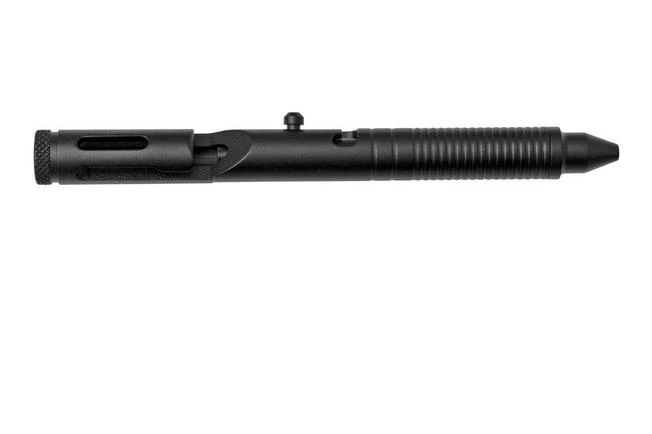 The Böker Plus CID cal .45 Black is a stunning tactical pen. Designed by Rainer Wenning in cooperation with knife maker Thomas Braunagel. The pen is made from black light-weight aluminium and feels great in hand. To open and close the pen Böker uses a Bolt action lock. As such the pen stays in place and it is fun to play with.