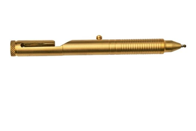 The Böker Plus CID cal .45 Brass is a stunning tactical pen. Designed by Rainer Wenning in cooperation with knife maker Thomas Braunagel. The pen is made from one piece of brass and feels great in hand. Keep in mind that brass will form a patina in time. As such each pen will become unique. To open and close the pen Böker uses a Bolt action lock. As such the pen stays in place and it is fun to play with.