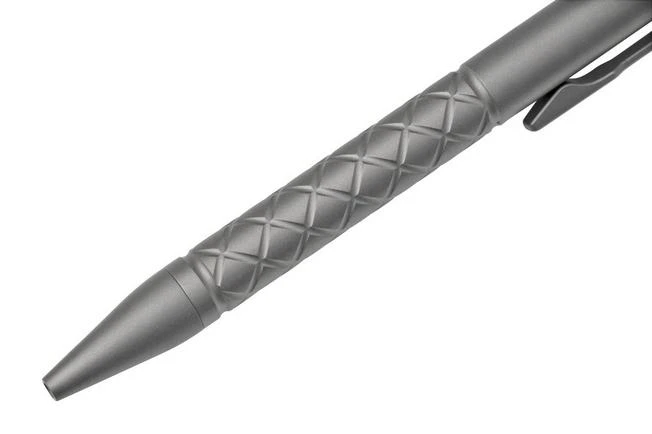The Civivi Coronet is a stunning EDC pen. The design is minimalistic. The pen is enhanced with a chequered texture for more grip. The head of the pen stands out. It is namely a fidget spinner, made to pass the time! The pen is also enhanced with a stunning pocket clip. As such you can always easily keep it close.