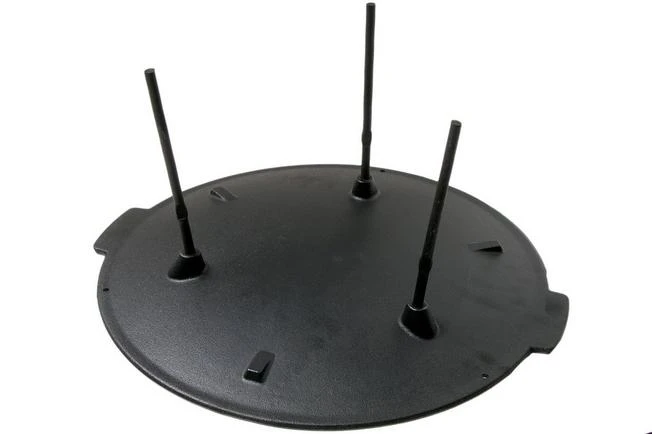 The Eagle Stekehelle is a large griddle/fire bowl made from cast iron. You place the griddle over hot coals or an open flame. Thanks to the 6 mm thick cast iron the griddle evenly heats up and also retains that heat for a long time. Cast iron is not stainless. That is why you should store it somewhere dry and rub a coat of oil on the surface if you won’t use it for a while.