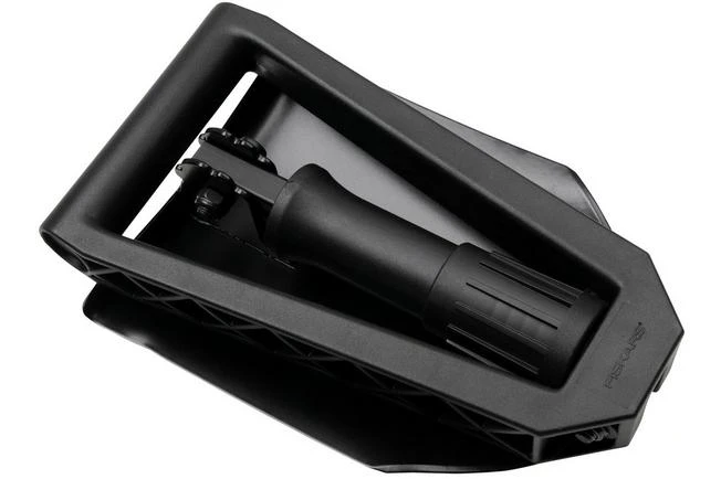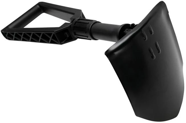 This Fiskars folding spade is an easily foldable spade. Because you can set the blade in different positions, it can be used both for scooping and for hacking. Extremely handy to take with you on your next camping or survival trip! It is made of hardened boron steel, hardened aluminium and plastic, so it can really take a beating.