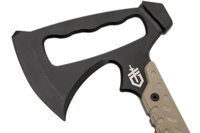 The Gerber Downrange Tomahawk is a versatile tool, designed for professionals. The fact that you can use it as an axe might not come as a surprise. The name Tomahawk kind of already gave that away. The edge is not really sharp, but will be perfect for the more demanding chopping jobs. You can, of course, easily sharpen it. But more interesting are its capacities as a forced entry tool. A type of key for professionals who don’t have time to look for their keys.