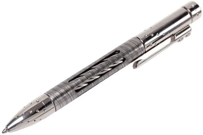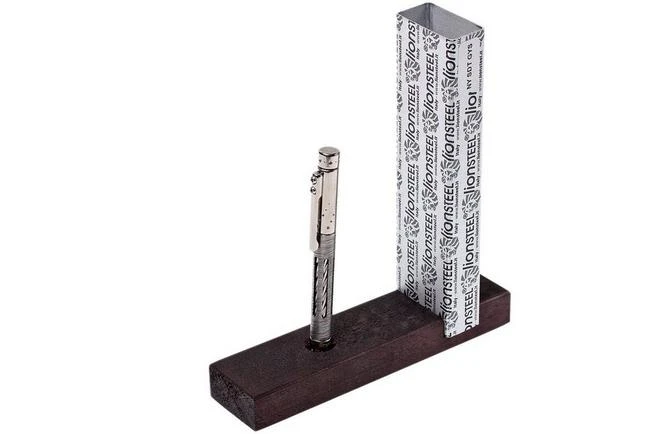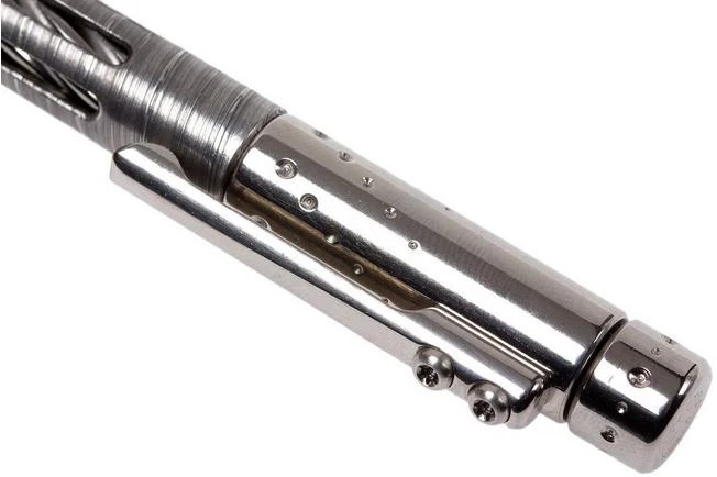 The LionSteel Nyala is a very exclusive titanium pen, designed by Tommaso Rumici. Made from only the best materials and with the use of the best techniques. This is a pen that is meant to be seen. The sleeve around the middle of the pen is unique. This one is made from very fine Twist Damascus steel. The twisted profile on the titanium core and the cut-outs in the sleeve make the Nyala look very challenging. When you turn the sleeve around the core this is visually pleasing.