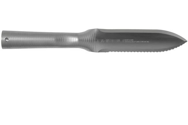 The Nisaku Hori Hori 6800 is a luxurious garden knife, made from one piece of stainless steel, according to Japanese tradition. The main advantage of this construction is that the knife is rock-solid. The stainless steel retains its sharpness for a long time and is not prone to rust. The handle is enhanced with a structure to make sure it feels great in hand. This handle is a little thick so this garden knife is perhaps not the best choice for those with smaller hands. The Hori Hori 6800 comes with a luxurious leather sheath.