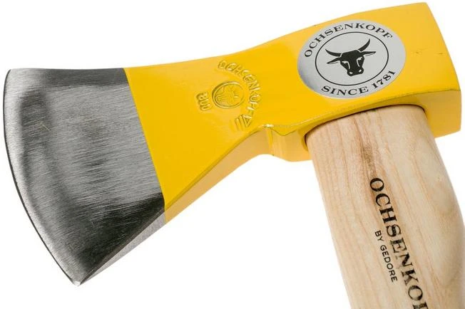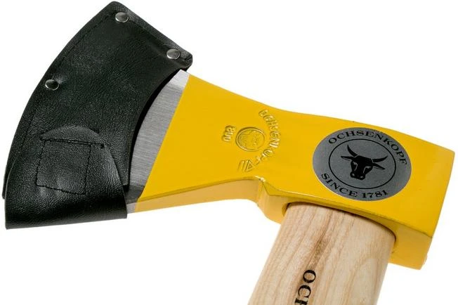 The Ochsenkopf OX 235 E-0802 felling axe is a practical axe. The perfect axe to take with you in your backpack when you go camping, but also suited as a hand axe to make kindle or when working in the garden or woods. This axe is flexible in use and light-weight (only 800 grams). The axe head is razor-sharp. The edge is even polished! This axe comes with a leather sheath to protect the cutting edge.