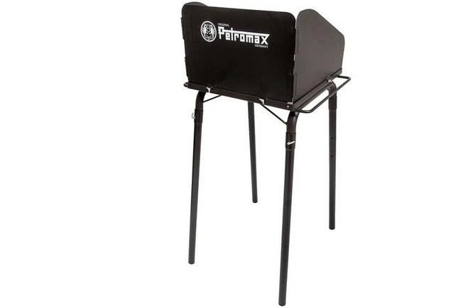 With the Petromax Dutch Oven fireproof table FE45 you can comfortable cook outside. You directly add the coals or briquettes to the table and you are good to go. The stable and solid table is made from steel and has a working surface of 45 x 45 cm. On it you can, depending on the size, cook with 3 Dutch Ovens at the same time. Do, however, make sure you don’t exceed the taxable weight of 80 kilos. Because of the working height of 87 cm you can cook comfortable without straining your back. It is also possible to remove the feet and place the FE45 on a heat proof surface. Because of the removable feet you can also easily take this fire proof table with you. The FE45 comes with a wind screen and a couple of practical brackets you can hang accessories from.
