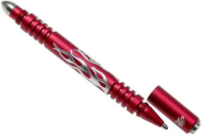 Rick Hinderer Investigator Pen Flames Aluminium Matte Red, Tactical Pen