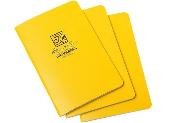 The yellow Rite in the Rain notebook 4 5/8″ x 7″ is great for making notes regardless of the weather. The paper is nearly indestructible and practically doesn’t age. The coating makes the paper waterproof, and even if the coating starts to deteriorate the paper can still get wet. Unlike synthetically or polyester coated paper you can recycle this type of paper. Great to be used underwater, outside when it is wet or in humid surroundings such as swimming pools and greenhouses.