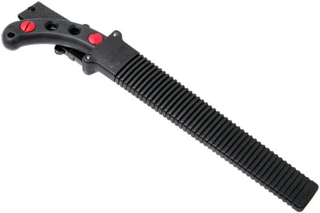 The Silky Gomtaro Nidangiri is a practical fixed pruning saw. You use it to prune trees and shrubs. Because it has a fixed blade you don’t have to worry about it closing when you don’t want it to. In addition, when you have a fixed Silky blade you can perfectly align the shape and the ratio between the handle and the blade. Some believe that that is why the Gomtaro is even better to work with.