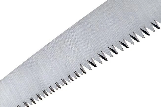 The Silky Gomtaro Pro Sentei is a practical, fixed pruning saw. You use it to prune trees and shrubs. Because it has a fixed blade you don’t have to worry about it closing when you don’t want it to. In addition, when you have a fixed Silky blade you can perfectly align the shape and the ratio between the handle and the blade. Some believe that that is why the Gomtaro is even better to work with.