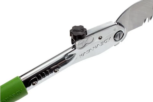 The Silky Katanaboy 650-4 extra course, black is a very large folding saw. It will bring hard to reach branches within reach. The folding saw is named after the Japanese Katana sword, partially because its unique blade length of 50 cm. Like the Katana the Katanaboy has a soft metal core. As a result it is very flexible and properly takes hold of the wood. The hard outside of the blade ensures that the blade will stay sharp for a long time.
