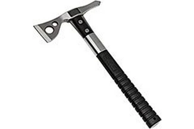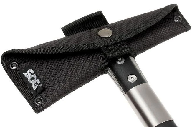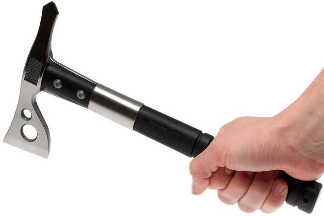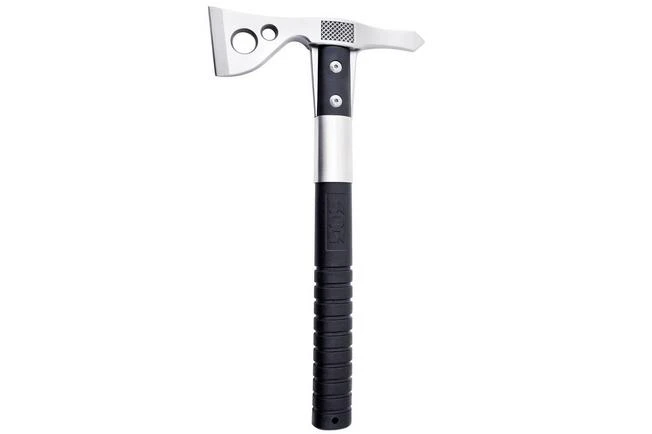 This SOG Fasthawk Polished F06PN-CP is a versatile tool that can be used for chopping, breaking, digging and throwing. The diamond-shaped surface on the axe head allows for precise hammering. The extremely strong, lightweight handle is made from fibre-reinforced nylon (FRN). This handle offers ultimate grip and control in any situation. The head is attached with robust screws and a metal collar, which shows that this tomahawk is truly meant to be used. The cutting edge of the axe head is razor-sharp and made from lightly matted 420 stainless steel. This type of steel has great sharpness retention. The included nylon cover can easily be attached to a belt or backpack. This multifunctional axe is a must-have for outdoor camping or survival trips!