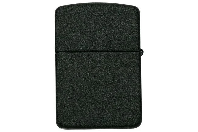This Zippo lighter is a replica of the Zippo from 1941. The Zippo looks a little shorter than the modern design, but they are similar in size. The corners are a little rounder and the top of the lighter is also rounded. The modern Zippo is enhanced with a 5-barrel hinge, the 1941 model has a 4 barrel hinge. This specific design has a black, rough design. As such the lighter looks like a stone.