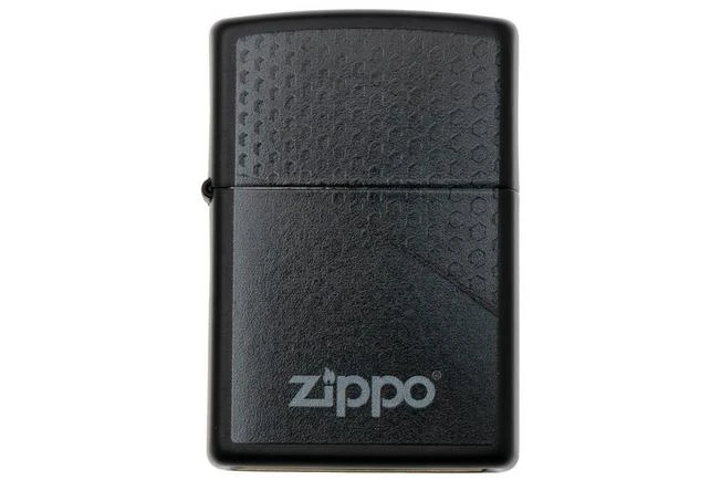 This matt black Zippo lighter has a design with hexagons. Zippo lighters have been produced ever since 1932. The American company has virtually become a synonym for this type of lighter. Everyone has seen them! The function of a wick hanging in a reservoir of lighter fluid is characteristic for this lighter. By rotating the wheel alongside a flint the sparks will hit the wick. As such it will light up. A wind catcher is fitted around the wick. As such the Zippo has been quite wind-resistant for dozens of years, even before storm lighters emerged.