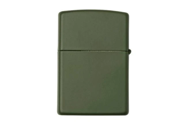 This *Zippo lighter is enhanced with a camo design. The rest of the lighter is matt dark green.