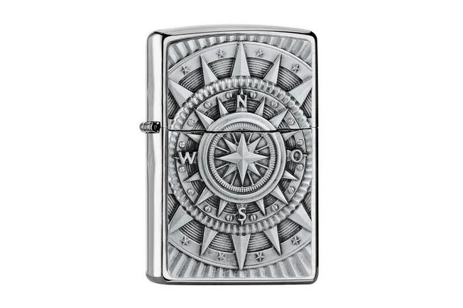This brushed chrome Zippo lighter is enhanced with a Compass emblem, making you feel like a real adventurer. The image was placed in 3D as an emblem on the Zippo lighter, making the lighter feel even more luxurious. As such this Zippo is a little heavier than the standard zippo.