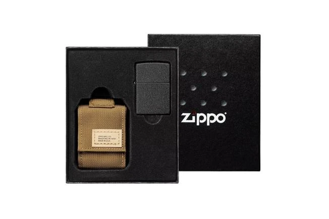 Zippo Tactical Brown Pouch And Black Crackle Windproof 49401-000002, Lighter Gift Set